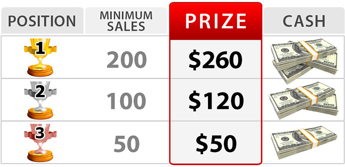 By achieving the required sales within 45 days, you will receive an amazing additional cash prize (in addition to your affiliate commission!). And remember that you also obtain additional earning for selling our upsell products, which are automatically offered to main product customers!